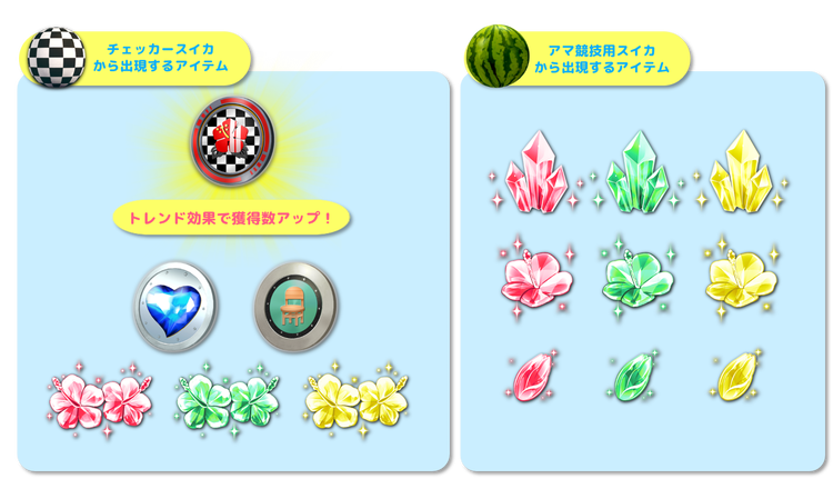 「チェッカースイカ」「Sランクビーチフラッグ挑戦券」『小道具「愛のオムライス」めしあがれ』などと交換できます!