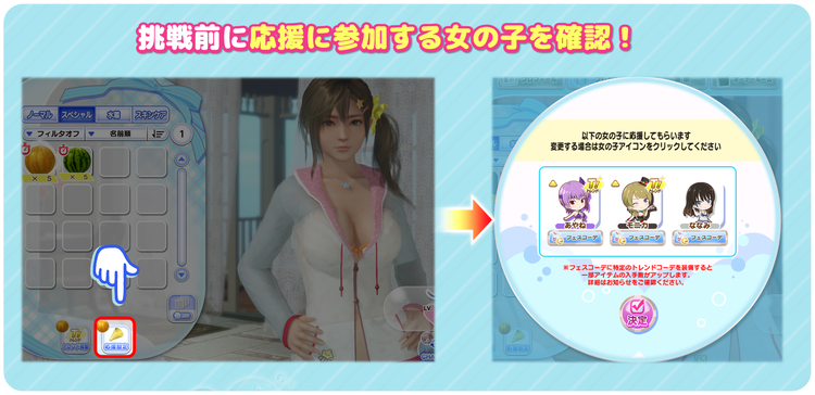 応援に参加する女の子の変更や、