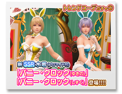SSR水着「バニー・クロック(ゆきの)」「バニー・クロック(しずく)」が登場します。