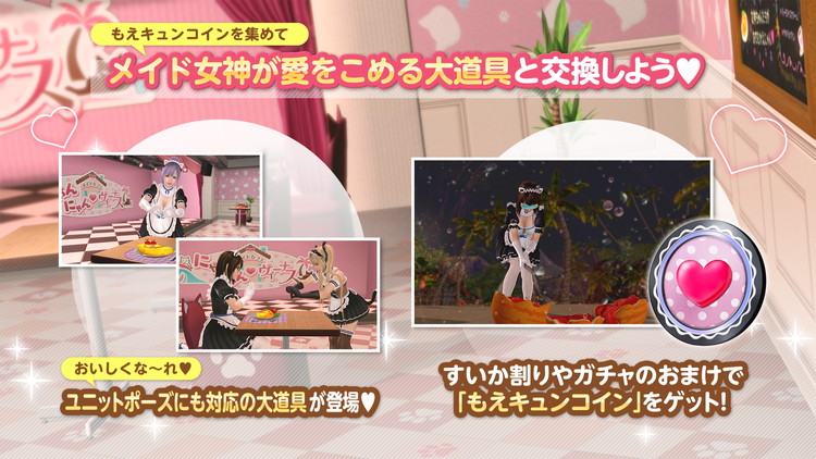 「もえキュンコイン」をメイド女神が愛を込める大道具と交換しよう♥